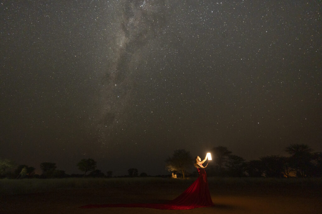We made it to Namibia! Safari adventures, city strolls, late-night shoots under the stars—it was already unforgettable. And the warm-up couldn’t have been better: a flowing red dress under the vast Namibian sky, in the heart of the savannah.