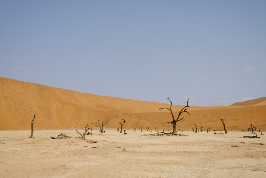 First, we drove to the location in a 4×4 bus. It was a bumpy ride, but so much fun! Then came a short walk to Deadvlei — a surreal clay pan in the Namib Desert, where dark, dead camel thorn trees rise starkly against the brilliant white salt flats, all framed by towering red sand dunes under an endless sky.